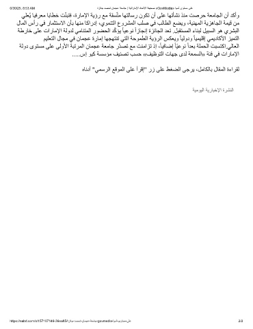 6/30/25, 8:53 AM ةزﺋﺎﺟ دﺻﺣﺗ نﺎﻣﺟﻋ ﺔﻌﻣﺎﺟ | ﺔﯾﺗارﺎﻣﻹا دﺎﺣﺗﻻا ﺔﻔﯾﺣﺻ «GovMedia» ﺎﯾﺳآ ىوﺗﺳﻣ ﻰﻠﻋ