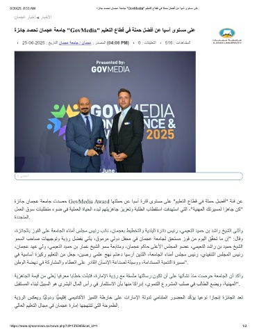 6/30/25, 8:53 AM ةزﺋﺎﺟ دﺻﺣﺗ نﺎﻣﺟﻋ ﺔﻌﻣﺎﺟ "GovMedia" مﯾﻠﻌﺗﻟا عﺎطﻗ ﻲﻓ ﺔﻠﻣﺣ لﺿﻓأ نﻋ ﺎﯾﺳآ ىوﺗﺳﻣ ﻰﻠﻋ