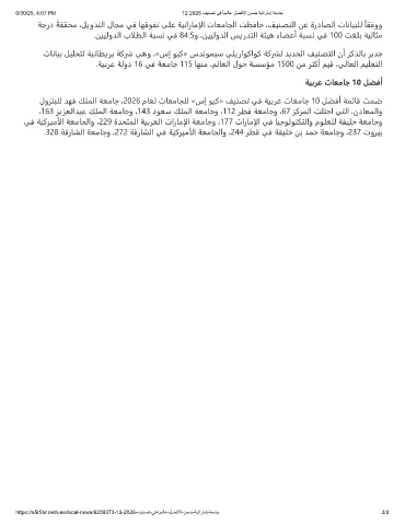لوﺮﺘﺒﻠﻟ ﺪﻬﻓ ﻚﻠﻤﻟا ﺔﻌﻣﺎﺟ ،2026 مﺎﻌﻟ تﺎﻌﻣﺎﺠﻠﻟ «سإ ﻮﻴﻛ» ﻒﻴﻨﺼﺗ ﻲﻓ ﺔﻴﺑﺮﻋ تﺎﻌﻣﺎﺟ 10 ﻞﻀﻓأ ﺔﻤﺋﺎﻗ ﺖﻤﺿ