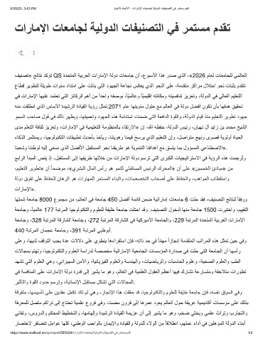 فﯾﻧﺻﺗ» ﺞﺋﺎﺗﻧ دﻛؤﺗ QS ةدﺣﺗﻣﻟا ﺔﯾﺑرﻌﻟا تارﺎﻣﻹا ﺔﻟود تﺎﻌﻣﺎﺟ نأ ،عوﺑﺳﻷا اذھ ردﺻ يذﻟا ،«2026 مﺎﻌﻟ تﺎﻌﻣﺎﺟﻠﻟ ﻲﻣﻟﺎﻌﻟا