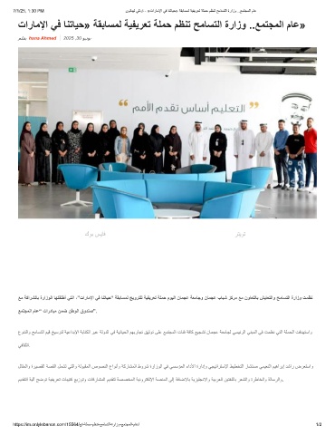 7/1/25, 1:30 PM نوﻧﺎﺑﯾﻟ ﻲﻠﻧوا - «تارﺎﻣﻹا ﻲﻓ ﺎﻧﺗﺎﯾﺣ» ﺔﻘﺑﺎﺳﻣﻟ ﺔﯾﻔﯾرﻌﺗ ﺔﻠﻣﺣ مظﻧﺗ ﺢﻣﺎﺳﺗﻟا ةرازو ..ﻊﻣﺗﺟﻣﻟا مﺎﻋ