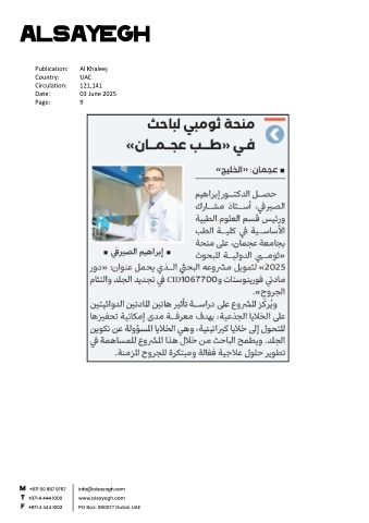 Publication: Al Khaleej Country: UAE Circulation: 121,141 Date: 03 June 2025 Page: 9