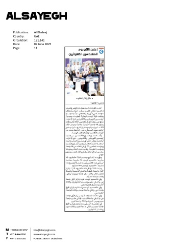 Publication: Al Khaleej Country: UAE Circulation: 121,141 Date: 09 June 2025 Page: 11