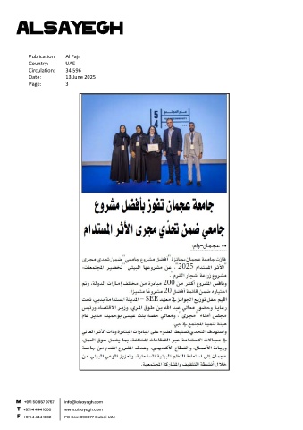 Publication: Al Fajr Country: UAE Circulation: 34,596 Date: 13 June 2025 Page: 3