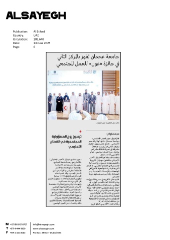 Publication: Al Etihad Country: UAE Circulation: 109,640 Date: 14 June 2025 Page: 6
