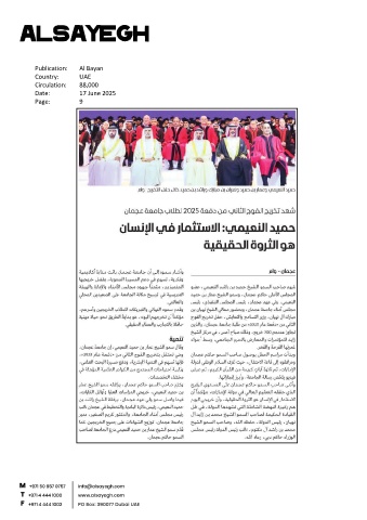 Publication: Al Bayan Country: UAE Circulation: 88,000 Date: 17 June 2025 Page: 9