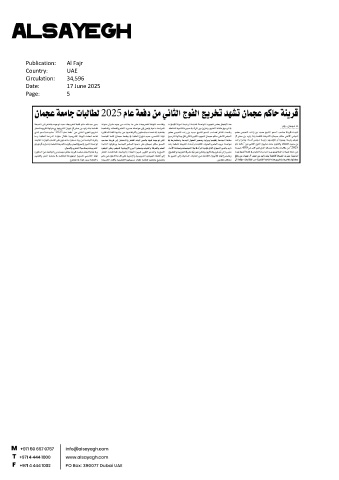 Publication: Al Fajr Country: UAE Circulation: 34,596 Date: 17 June 2025 Page: 5