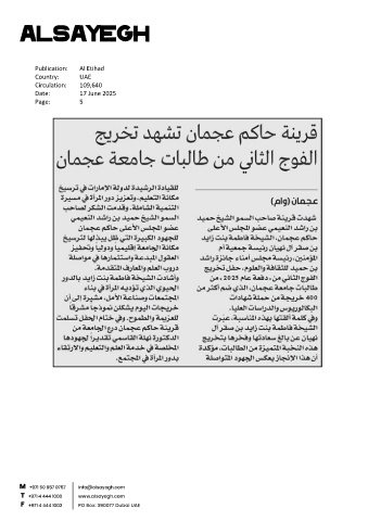 Publication: Al Etihad Country: UAE Circulation: 109,640 Date: 17 June 2025 Page: 5
