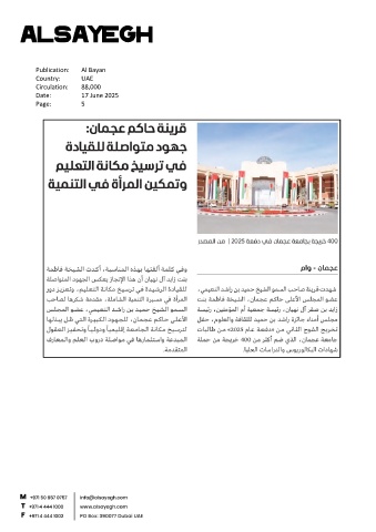 Publication: Al Bayan Country: UAE Circulation: 88,000 Date: 17 June 2025 Page: 5
