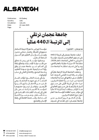 Publication: Al Khaleej Country: UAE Circulation: 121,141 Date: 21 June 2025 Page: 8