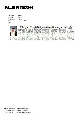 Publication: Al Fajr Country: UAE Circulation: 34,596 Date: 25 June 2025 Page: 3