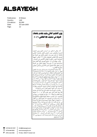 Publication: Al Watan Country: UAE Circulation: 83,000 Date: 25 June 2025 Page: 12