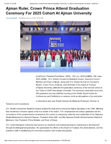 6/17/25, 10:16 AM Ajman Ruler, Crown Prince Attend Graduation Ceremony For 2025 Cohort At Ajman University - UrduPoint
