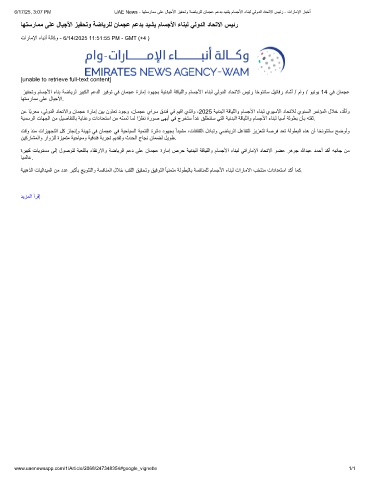 نﻋ ﺎًﺑرﻌﻣ ،ﻲﻟودﻟا دﺎﺣﺗﻻاو نﺎﻣﺟﻋ ةرﺎﻣإ نﯾﺑ نوﺎﻌﺗ دوﺟو ،نﺎﻣﺟﻋ يارﺳ قدﻧﻓ ﻲﻓ مﯾﻗا يذﻟاو ،2025 ﺔﯾﻧدﺑﻟا ﺔﻗﺎﯾﻠﻟاو مﺎﺳﺟﻷا ءﺎﻧﺑﻟ يوﯾﺳﻵا دﺎﺣﺗﻼﻟ يوﻧﺳﻟا رﻣﺗؤﻣﻟا لﻼﺧ ،دّﻛأو