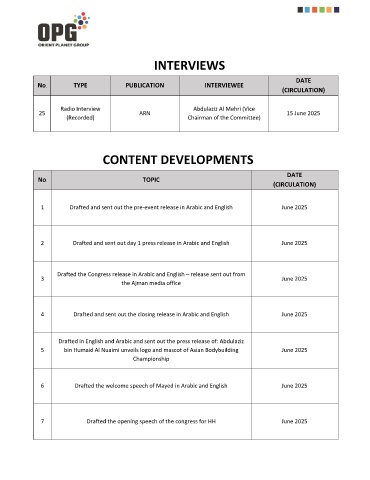 2 Drafted and sent out day 1 press release in Arabic and English June 2025