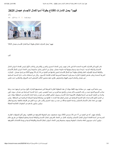 تارﺎﻣإلا – نﺎﻤﺠﻋ ةرﺎﻣإ ﻲﻓ 2025 ﻮﻴﻧﻮﻳ 18 ﻰﻟإ 14 ﻦﻣ ةﺮﺘﻔﻟا ﻲﻓ ﺎﻬﺘﻣﺎﻗإ رﺮﻘﻤﻟا مﺎﺴﺟألا لﺎﻤﻜﻟ ﺎﻴﺳآ ﺔﻟﻮﻄﺑ حﺎﺘﺘﻓاو مﺎﻌﻟا فارشإلﻟ ،ﺔﻴﻧﺪﺒﻟا ﺔﻗﺎﻴﻠﻟاو