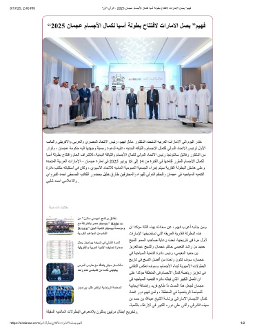 “2025 نﺎﻤﺠﻋ مﺎﺴﺟﻷا لﺎﻤﻜﻟ ﺎﯿﺳآ ﺔﻟﻮﻄﺑ حﺎﺘﺘﻓﻻ تارﺎﻣﻻا ﻞﺼﯾ ”ﻢﯿﮭﻓ