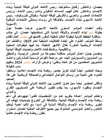 6/17/25, 2:47 PM ٹﻧﺋاوﺑ نﺎﺗﺳﮐﺎﺑ | 2025 ﺔﯾﻧدﺑﻟا ﺔﻗﺎﯾﻠﻟاو مﺎﺳﺟﻷا ءﺎﻧﺑﻟ يوﯾﺳﻵا دﺎﺣﺗﻼﻟ يوﻧﺳﻟا رﻣﺗؤﻣﻟا فﯾﺿﺗﺳﺗ نﺎﻣﺟﻋ