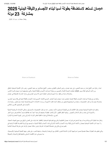 6/16/25, 1:56 PM ﺔﻟود 23 ﺔﻛرﺎﺷﻣﺑ 2025 ﺔﯾﻧدﺑﻟا ﺔﻗﺎﯾﻠﻟاو مﺎﺳﺟﻷا ءﺎﻧﺑﻟ ﺎﯾﺳآ ﺔﻟوطﺑ ﺔﻓﺎﺿﺗﺳﻻ دﻌﺗﺳﺗ نﺎﻣﺟﻋ