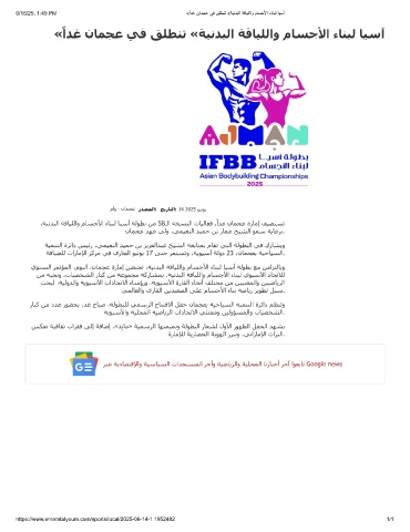 6/16/25, 1:49 PM «ًادﻏ نﺎﻣﺟﻋ ﻲﻓ ﻖﻠطﻧﺗ «ﺔﯾﻧدﺑﻟا ﺔﻗﺎﯾﻠﻟاو مﺎﺳﺟﻷا ءﺎﻧﺑﻟ ﺎﯾﺳآ
