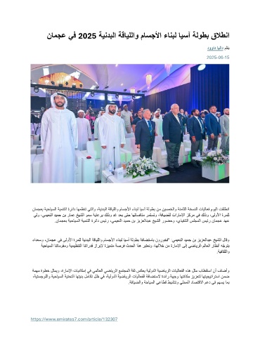 نامجع يف 2025 ةيندبلا ةقايللاو ماسجلأا ءانبل ايسآ ةلوطب قلاطنا