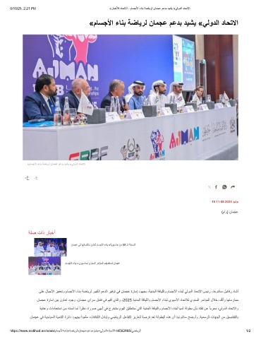نﺎﻣﺟﻋ ةرﺎﻣإ نﯾﺑ نوﺎﻌﺗ دوﺟو ،نﺎﻣﺟﻋ يارﺳ قدﻧﻓ ﻲﻓ مﯾﻗأ يذﻟاو ،2025 ﺔﯾﻧدﺑﻟا ﺔﻗﺎﯾﻠﻟاو مﺎﺳﺟﻷا ءﺎﻧﺑﻟ يوﯾﺳﻵا دﺎﺣﺗﻼﻟ يوﻧﺳﻟا رﻣﺗؤﻣﻟا لﻼﺧ ،دّﻛأو.ﺎﮭﺗﺳرﺎﻣﻣ