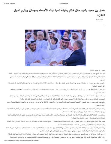 لودﻟا مرﻛﯾو نﺎﻣﺟﻌﺑ مﺎﺳﺟﻷا ءﺎﻧﺑﻟ ﺎﯾﺳآ ﺔﻟوطﺑ مﺎﺗﺧ لﻔﺣ دﮭﺷﯾ دﯾﻣﺣ نﺑ رﺎﻣﻋ