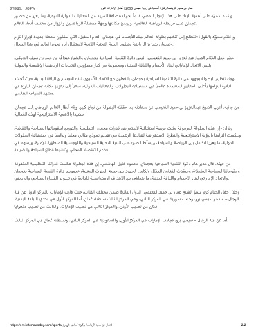 يضﺎﻳﺮﻟاو ﻲﺣﺎﻴﺴﻟا عﺎﻄﻘﻟا ﺮﻳﻮﻄﺗ ﻲﻓ ةﺮﺋاﺪﻠﻟ ﺔﻴﺠﻴﺗاﺮﺘﺳالا فاﺪﻫألا ﻊﻣ ىشﺎﻤﺘﻳ ﺎﻣ ،ﺔﻴﻧﺪﺒﻟا ﺔﻗﺎﻴﻠﻟاو مﺎﺴﺟألا ءﺎﻨﺒﻟ ﻲﺗارﺎﻣإلا دﺎﺤﺗالاو.