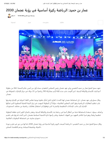 6/19/25, 1:43 PM موﯾﻟا تارﺎﻣﻹا رﺎﺑﺧأ | 2030 نﺎﻣﺟﻋ ﺔﯾؤر ﻲﻓ ﺔﯾﺳﺎﺳأ ةزﯾﻛر ﺔﺿﺎﯾرﻟا :دﯾﻣﺣ نﺑ رﺎﻣﻋ