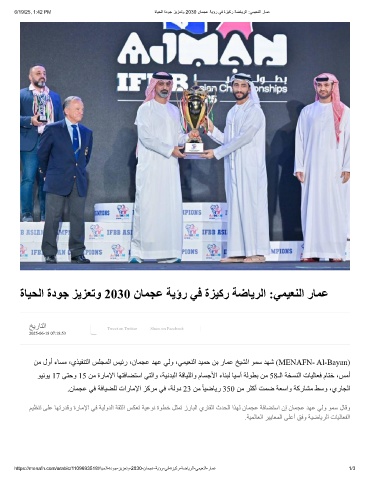 https://menafn.com/arabic/1109693518/ةﺎﯾﺣﻟا-ةدوﺟ-زﯾزﻌﺗو-2030-نﺎﻣﺟﻋ-ﺔﯾؤر-ﻲﻓ-ةزﯾﻛر-ﺔﺿﺎﯾرﻟا-ﻲﻣﯾﻌﻧﻟا-رﺎﻣﻋ 1/3
