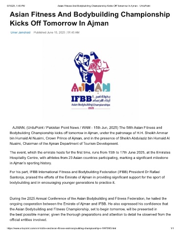 6/16/25, 1:40 PM Asian Fitness And Bodybuilding Championship Kicks Off Tomorrow In Ajman - UrduPoint