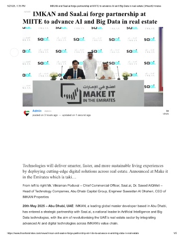 5/21/25, 1:35 PM IMKAN and Saal.ai forge partnership at MIITE to advance AI and Big Data in real estate | iHeartEmirates