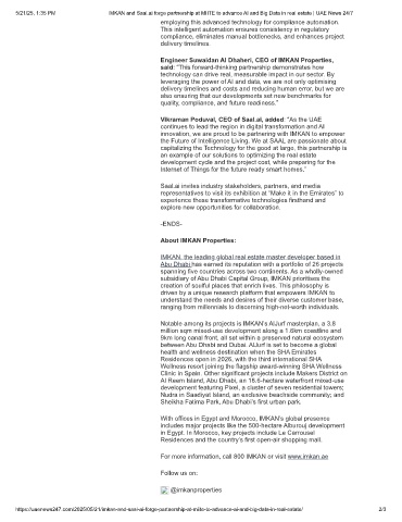 5/21/25, 1:35 PM IMKAN and Saal.ai forge partnership at MIITE to advance AI and Big Data in real estate | UAE News 24/7