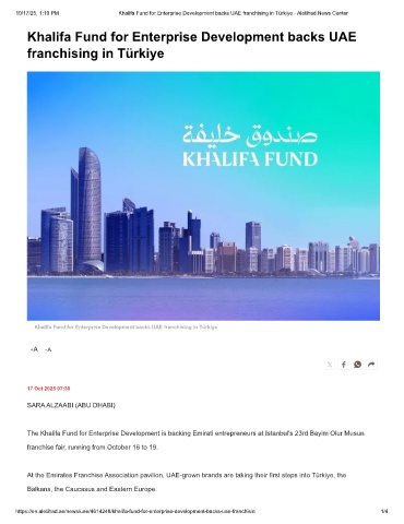 10/17/25, 1:10 PM Khalifa Fund for Enterprise Development backs UAE franchising in Türkiye - Aletihad News Center