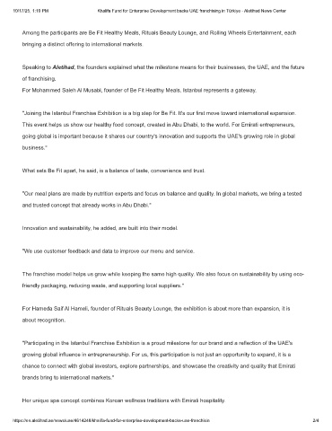 10/17/25, 1:10 PM Khalifa Fund for Enterprise Development backs UAE franchising in Türkiye - Aletihad News Center