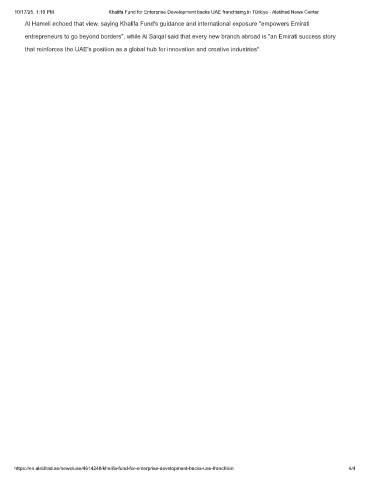 10/17/25, 1:10 PM Khalifa Fund for Enterprise Development backs UAE franchising in Türkiye - Aletihad News Center