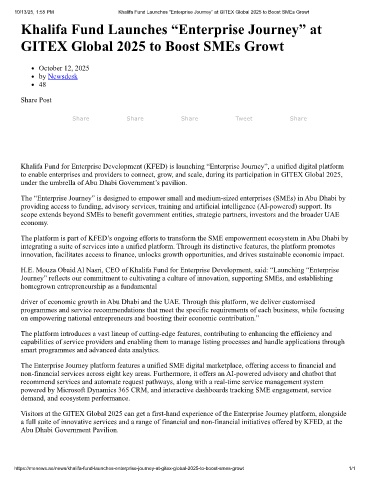 10/13/25, 1:55 PM Khalifa Fund Launches “Enterprise Journey” at GITEX Global 2025 to Boost SMEs Growt