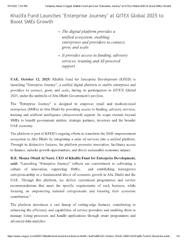 10/13/25, 1:55 PM Company News in Egypt: Khalifa Fund Launches "Enterprise Journey" at GITEX Global 2025 to Boost SMEs Growth