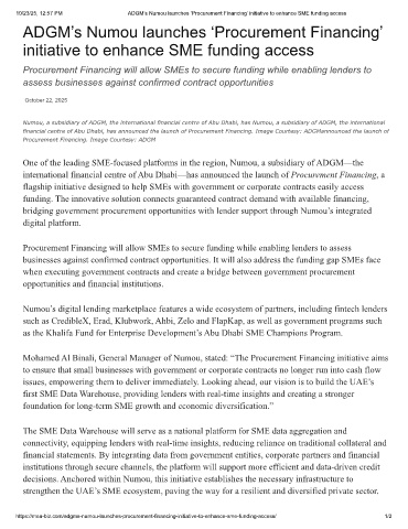 10/23/25, 12:57 PM ADGM’s Numou launches ‘Procurement Financing’ initiative to enhance SME funding access
