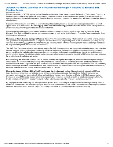 10/23/25, 12:58 PM ADGM’s Numou Launches ‘Procurement Financing’ Initiative To Enhance SME Funding Access #AbuDhabi - Abu Dh…
