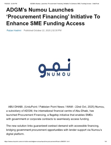 10/23/25, 12:59 PM ADGM’s Numou Launches ‘Procurement Financing’ Initiative To Enhance SME Funding Access - UrduPoint