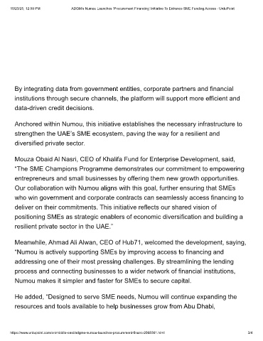 10/23/25, 12:59 PM ADGM’s Numou Launches ‘Procurement Financing’ Initiative To Enhance SME Funding Access - UrduPoint