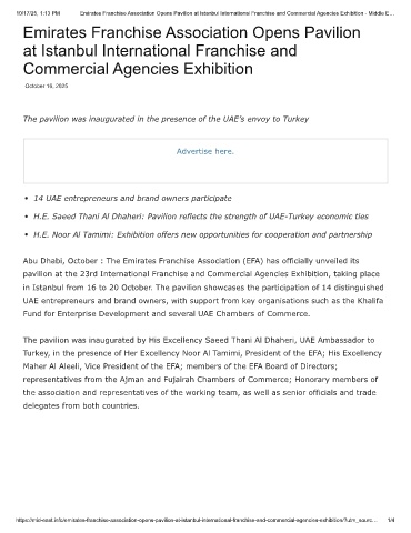 10/17/25, 1:13 PM Emirates Franchise Association Opens Pavilion at Istanbul International Franchise and Commercial Agencies Exhibition - Middle E…