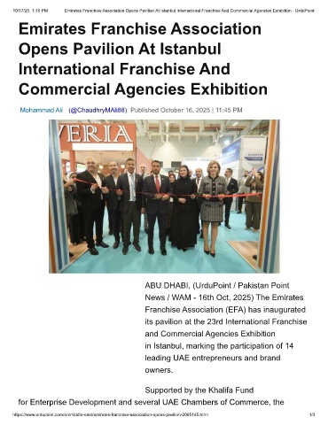 10/17/25, 1:15 PM Emirates Franchise Association Opens Pavilion At Istanbul International Franchise And Commercial Agencies Exhibition - UrduPoint