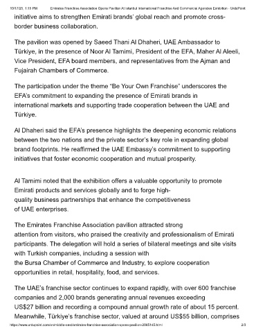 10/17/25, 1:15 PM Emirates Franchise Association Opens Pavilion At Istanbul International Franchise And Commercial Agencies Exhibition - UrduPoint