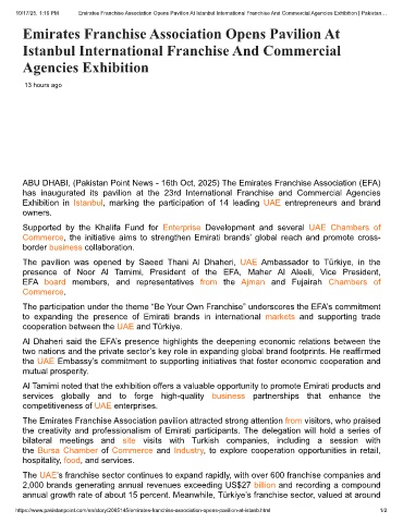 10/17/25, 1:16 PM Emirates Franchise Association Opens Pavilion At Istanbul International Franchise And Commercial Agencies Exhibition | Pakistan…