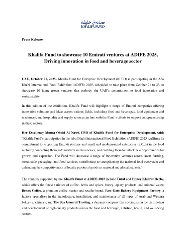 UAE, October 21, 2025- Khalifa Fund for Enterprise Development (KFED) is participating in the Abu