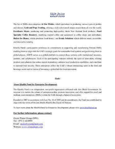 to national food security. These enterprises reflect the UAE’s vibrant enterprising spirit in the food and