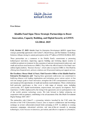 UAE,  October 17, 2025:  Khalifa  Fund  for Enterprise Development (KFED) signed three