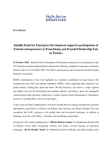 16 October 2025 - Khalifa Fund for Enterprise Development announced its participation in the